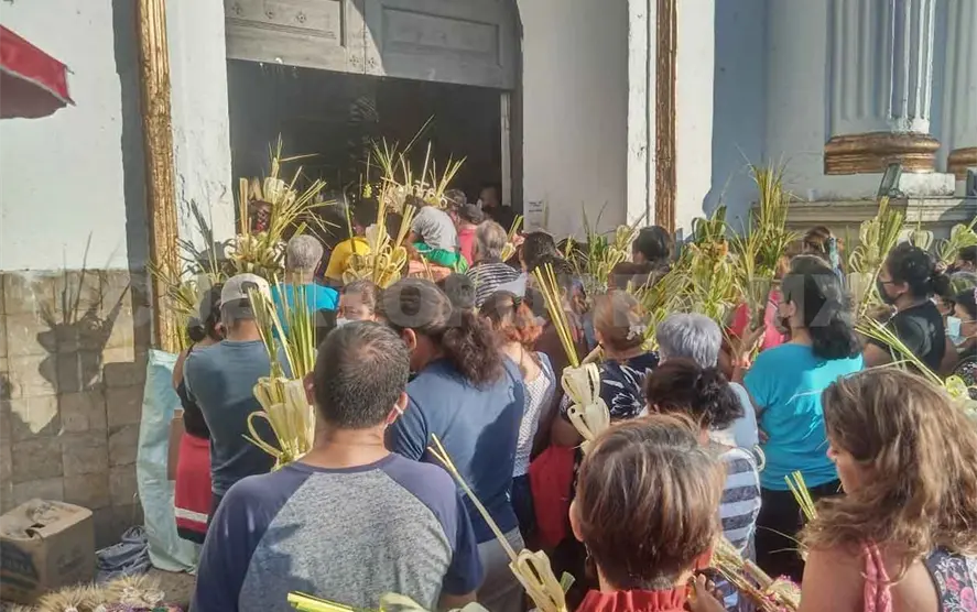 La iglesia de San Agustín, en el centro de la ciudad, concentró a miles de feligreses que acudieron a la misa de las 7:00 horas, oficiada por el obispo Jaime Calderón; al final sus ramos fueron bendecidos.