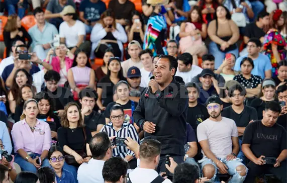El ambiente se encendió con entusiasmo en la Arena Metropolitana “Jorge Cuesy”, de Tuxtla Gutiérrez. Entre ovaciones, cientos de estudiantes de la Universidad Autónoma de Chiapas (Unach) recibieron al gobernador Eduardo Ramírez Aguilar en un evento que se convirtió en una verdadera fiesta de juventud y esperanza.