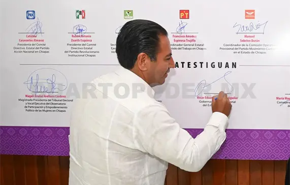 El gobernador Eduardo Ramírez Aguilar participó en la Firma del Pacto Estatal por los Derechos Políticos y Electorales de las Mujeres Chiapanecas, Libres de Violencia, donde celebró los avances en la materia y reconoció que aún hay retos por superar para garantizar su plena participación. En ese sentido, reafirmó su respaldo para que la igualdad política sea una realidad en Chiapas.