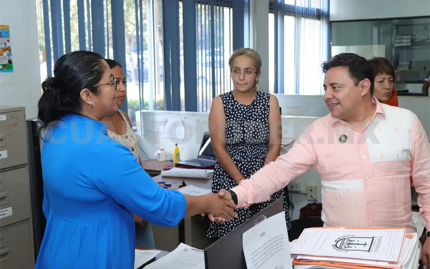 En esta visita, Moreno Guillén saludó y exhortó a las y los servidores jurisdiccionales y administrativos adscritos a los juzgados familiares, y a las subdirecciones regionales del Centro Estatal de Justicia Alternativa (CEJA) y del Instituto de la Defensoría Pública, así como áreas administrativas, a seguir conduciéndose de manera profesional, transparente y eficaz, pero sobretodo, a dar un trato digno y humanista a las y los usuarios que acuden a este palacio de justicia.