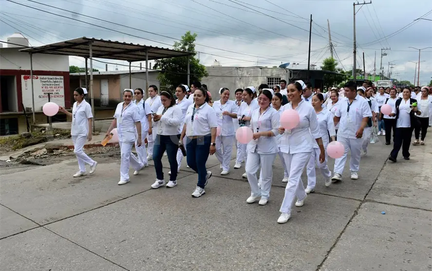 Autoridades de salud encabezaron una marcha conmemorativa al Día Internacional de la Lucha Contra el Cáncer de Mama, con el lema “Lucha con amor, vence con esperanza”. Posteriormente, impartieron pláticas de prevención de la enfermedad y testimonios de pacientes.