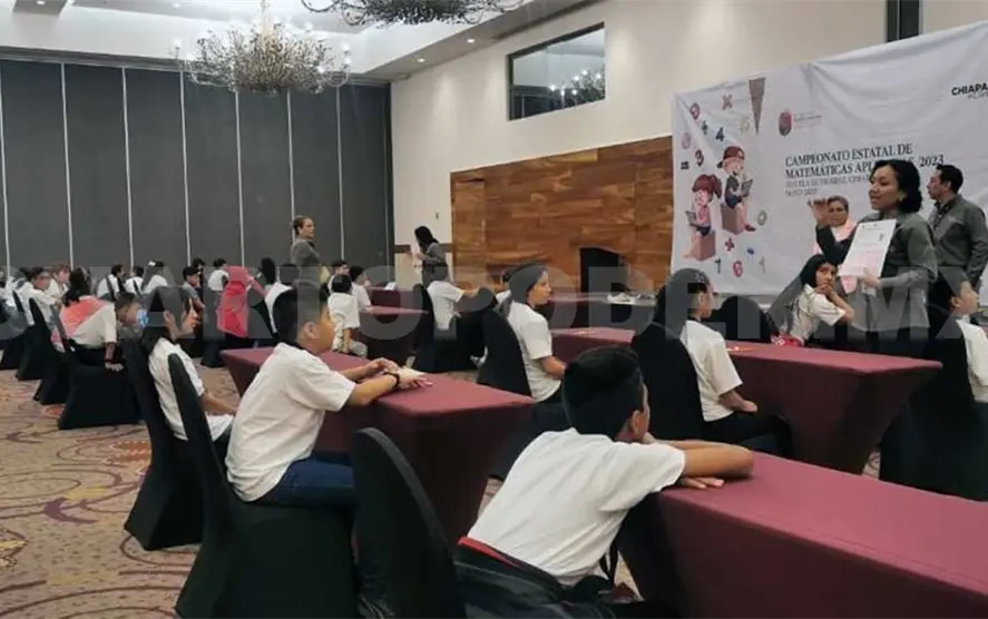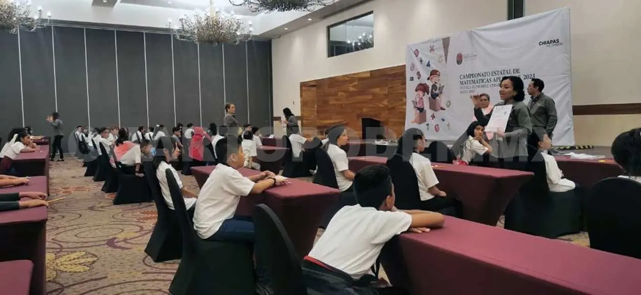 Durante la inauguración del Campeonato Estatal de Matemáticas Aplicadas 2023, a realizarse este martes 23 de mayo en conocido hotel de capital chiapaneca, dirigido en esta etapa a estudiantes de educación primaria, el subsecretario de Educación Estatal detalló que además se impulsa la Estrategia Estatal de Recuperación Académica, instrumentada al inicio del Ciclo Escolar 2022-2023, la cual da prioridad a las asignaturas de español y matemáticas; deseando finalmente la mejor de las experiencias y desempeño a cada uno de las y los estudiantes concursantes.