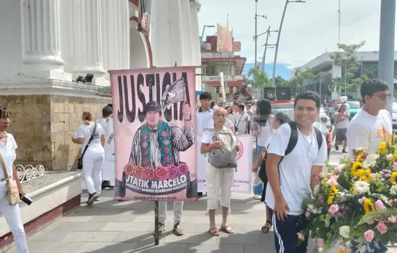 Una pancarta llamaba la atención con la leyenda “Justicia Jtatik Marcelo, sacerdote y defensor de derechos humanos”.