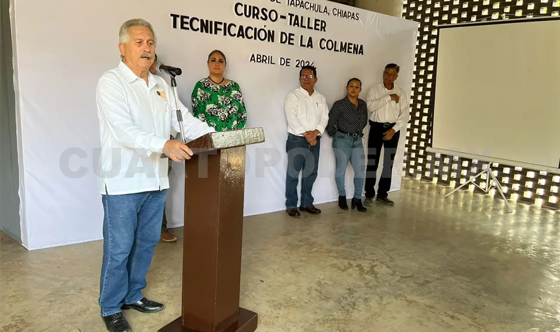 “Tapachula ha puesto una piedra fundamental con este trabajo de vinculación relacionado con la producción apícola, el cual no solo es producir miel para comercializarla, sino para producir abejas e incrementar las colmenas, ponerlas en lugares en donde hagan su función esencial que es la polinización”, subrayó.