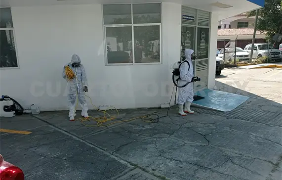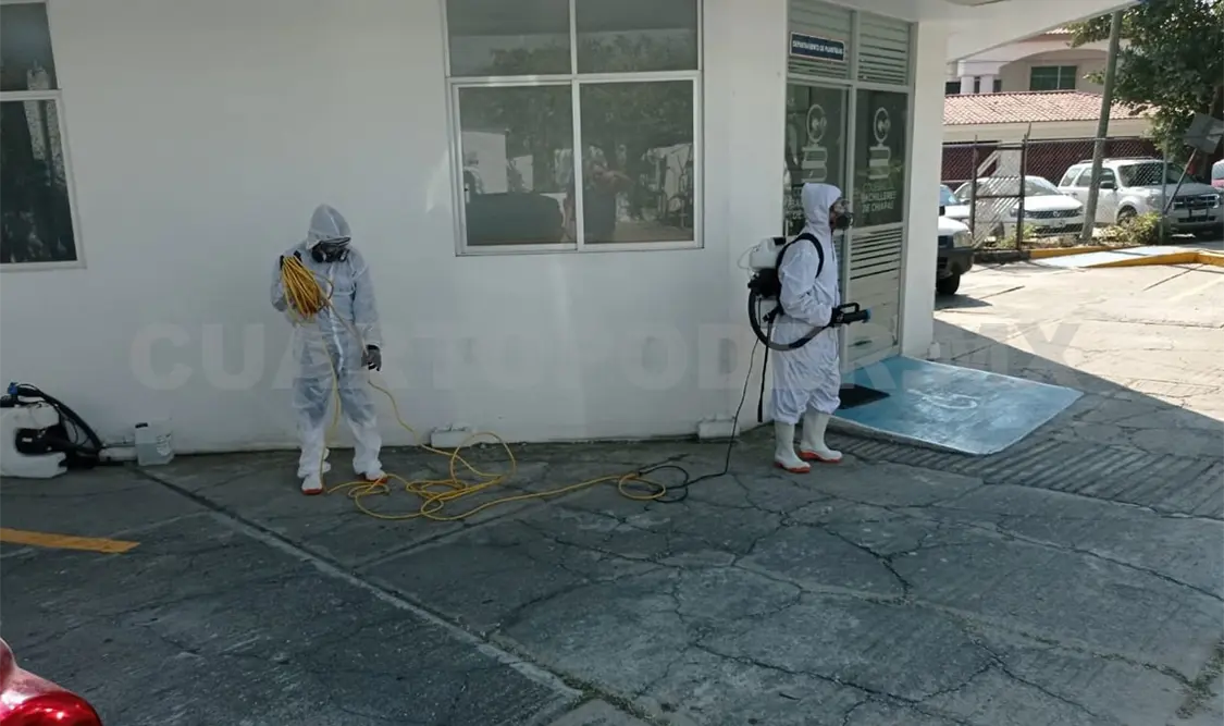 El Colegio de Bachilleres de Chiapas (Cobach) realizó acciones de desinfección en sus oficinas centrales en la capital chiapaneca, priorizando espacios públicos comunes, a fin de tomar medidas de control e higiene para prevenir la propagación del virus SARS-CoV-2 que origina el covid-19.