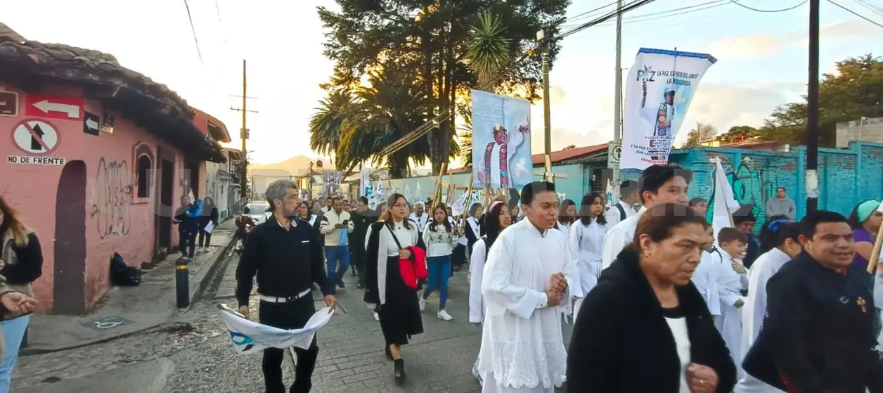 Con la imagen del padre Marcelo, quien este viernes 17 cumpliría 51 años; banderas blancas con la palabra paz; con cruces de madera y la imagen de la virgen de Guadalupe, los católicos caminaron durante una hora hasta el templo ubicado en el barrio de Cuxtitali, en cuyas cercanías fue atacado a balazos Pérez Pérez el 20 de octubre.