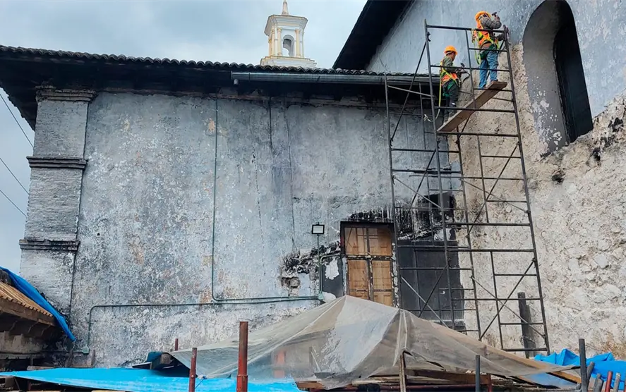 Con recursos gestionados por el Instituto Nacional de Antropología e Historia a través del Centro INAH Chiapas, ante el Seguro institucional para inmuebles federales siniestrados, en septiembre del presente año se iniciaron los trabajos para resarcir los daños ocasionados por el incendio del pasado 10 de enero de 2025 en el patio norte del templo de la Merced en San Cristóbal de Las Casas, Chiapas; los trabajos consisten en reconstrucción del cuarto de velas con una mejor estructura, reparación del alero de la barda norte, aleros, aplanados y pintura en muros norte y poniente de la nave principal y capilla respectivamente, instalación eléctrica y reparación de dos vitrales, entre otros trabajos.