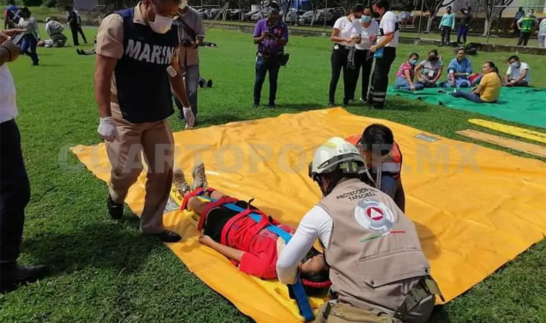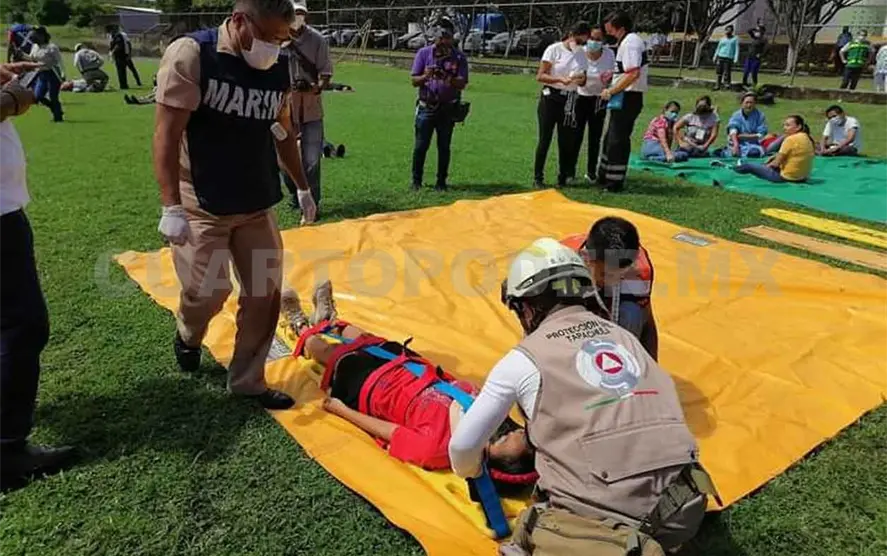 En el simulacro se dieron cita representantes de instituciones como la Cruz Roja Tapachula, Secretaría de Marina, Instituto Mexicano del Seguro Social (IMSS), Protección Civil, Bomberos y personal de salud adscrito al hospital de tercer nivel.
