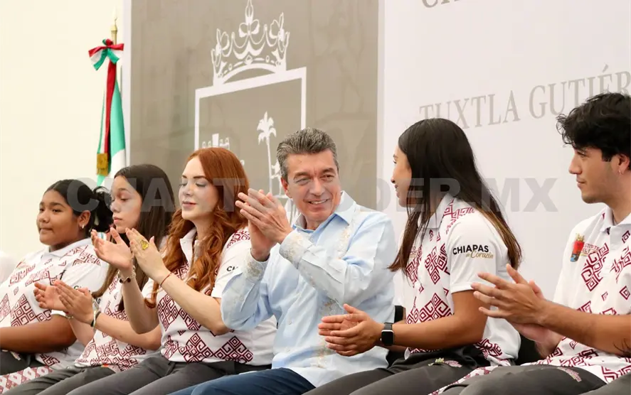 Al tomar el micrófono en las instalaciones del Instituto del Deporte en Tuxtla Gutiérrez, el mandatario estatal encomendó a la delegación chiapaneca representar con orgullo a la entidad.