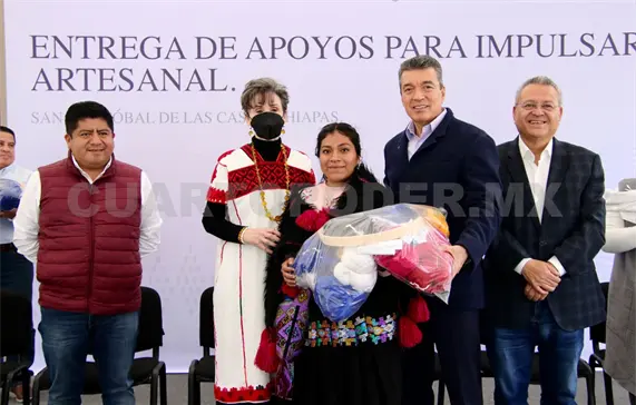 Al entregar materia prima e insumos a 224 artesanas textiles de ocho municipios de la región Altos Tsotsil Tseltal, el gobernador Rutilio Escandón Cadenas anunció que estos apoyos se darán cada seis meses y se irán sumando más artesanas, a fin de que continúen realizando estos trabajos y evitar que caigan en engaños de vivales que buscan aprovecharse.