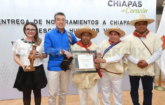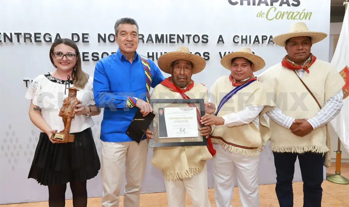 En la entrega de nombramientos Tesoros Humanos Vivos de Chiapas, el gobernador Rutilio Escandón Cadenas expresó su satisfacción por ser parte de este acto de justicia que reconoce a quienes, a través de sus conocimientos, talento, fuerza y sabiduría, se han convertido en guardianes de las culturas y las tradiciones que enaltecen a Chiapas y México ante el mundo.