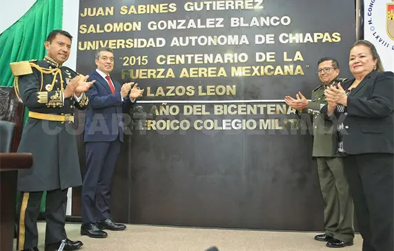 En tanto, el subdirector del Heroico Colegio Militar, Manuel Ladrón de Guevara Job, subrayó que este acto simboliza un precedente importante, al inmortalizar el nombre del Heroico Colegio Militar a la par de ilustres chiapanecos que se destacan históricamente por su patriotismo, tal como don Belisario Domínguez, Ángel Albino Corzo y Manuel Velasco Suárez. Detalló que, desde su creación, hace 200 años, en esta institución educativa se forja el liderazgo y futuros soldados que defenderán con valentía a su nación.