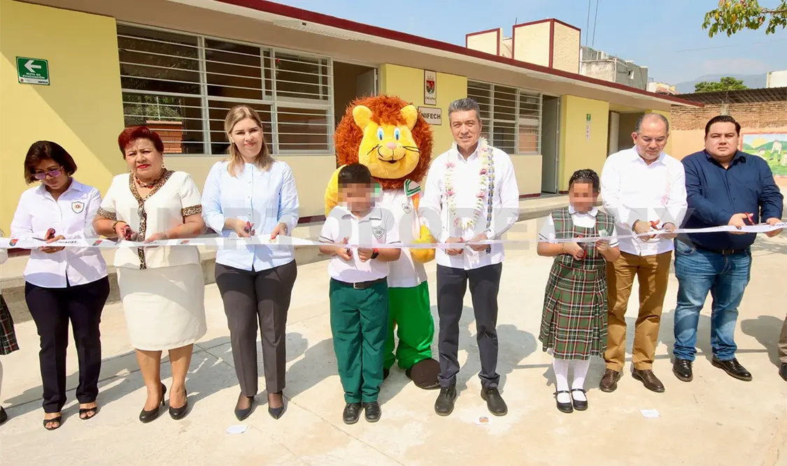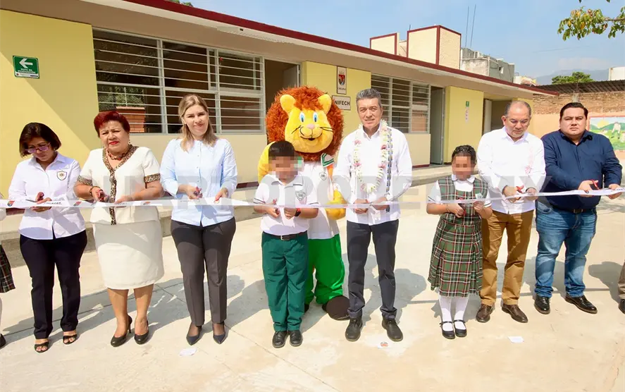 El gobernador Rutilio Escandón Cadenas inauguró espacios en la Escuela Primaria Club de Leones, en Tuxtla Gutiérrez, donde enfatizó que entre los principales propósitos de este gobierno se encuentra brindar a las niñas, niños y jóvenes infraestructura segura y funcional en sus planteles educativos.