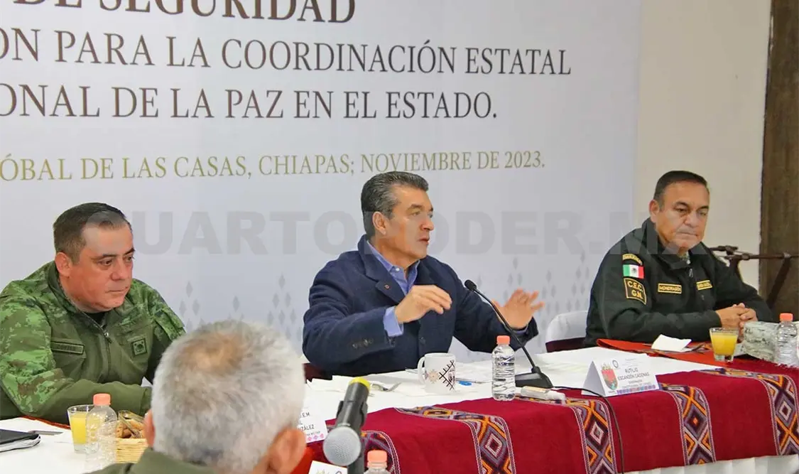 En San Cristóbal de Las Casas, el gobernador Rutilio Escandón Cadenas encabezó la Mesa de Coordinación Estatal para la Construcción de la Paz y la Seguridad, donde informó que el frente frío número 8 seguirá provocando lluvias y bajas temperaturas en territorio estatal, pero con mayor intensidad en los municipios de las regiones Soconusco y Sierra.