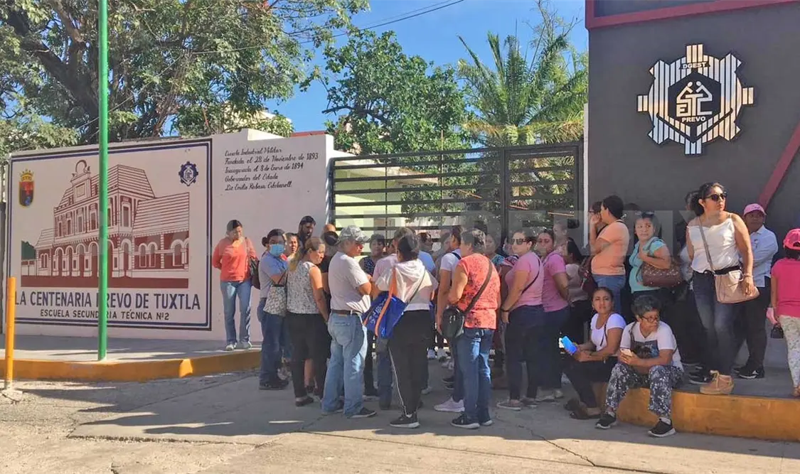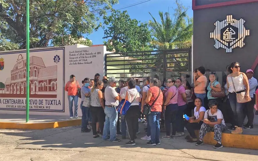 Madres y padres de familia se manifestaron en la entrada de la Escuela Secundaria Técnica núm. 2 “Centenaria Prevo de Tuxtla”, para evitar el ingreso de Julio César “N” como profesor de artes, pues tiene una carpeta de investigación abierta por presuntos delitos contra una menor en el municipio de Palenque y por lo cual exigen respuestas a la Subsecretaría de Educación Federalizada (SEF).