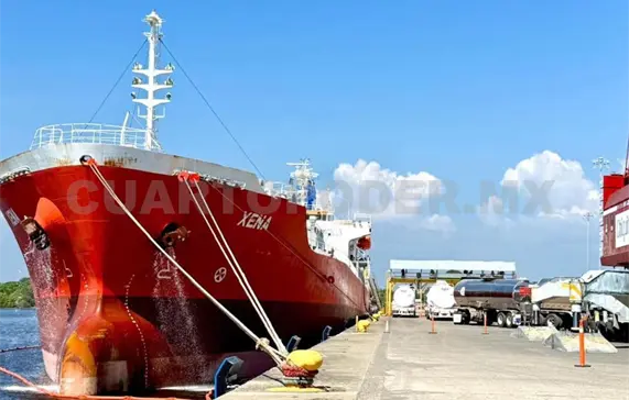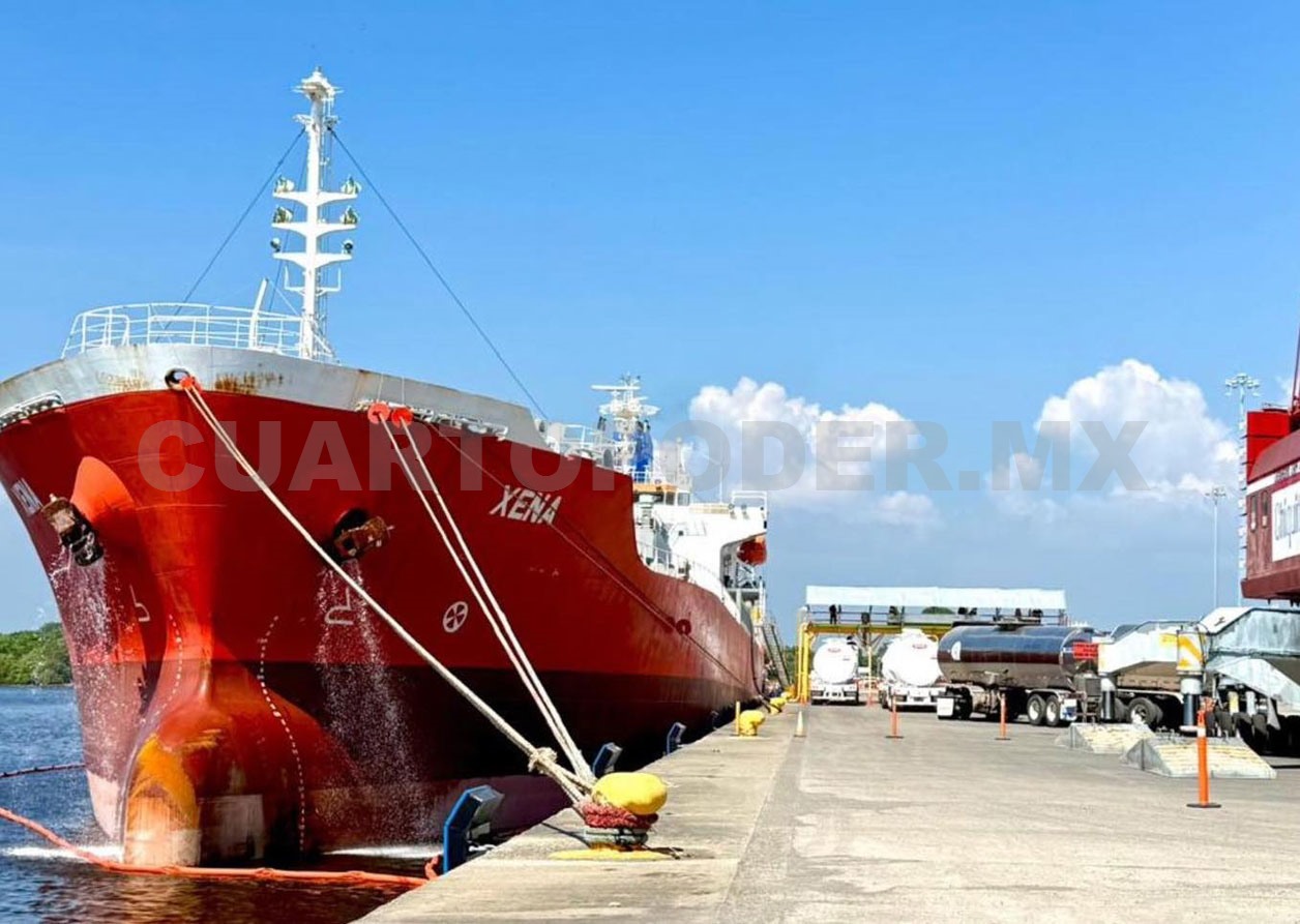 A su vez, procedente de Puerto Quetzal, Guatemala, el buque quimiquero “Xena”, de bandera panameña, atracó en Puerto Chiapas para descargar aceite de soya desgomado para la planta Inelac, ubicada a unos kilómetros del recinto portuario.