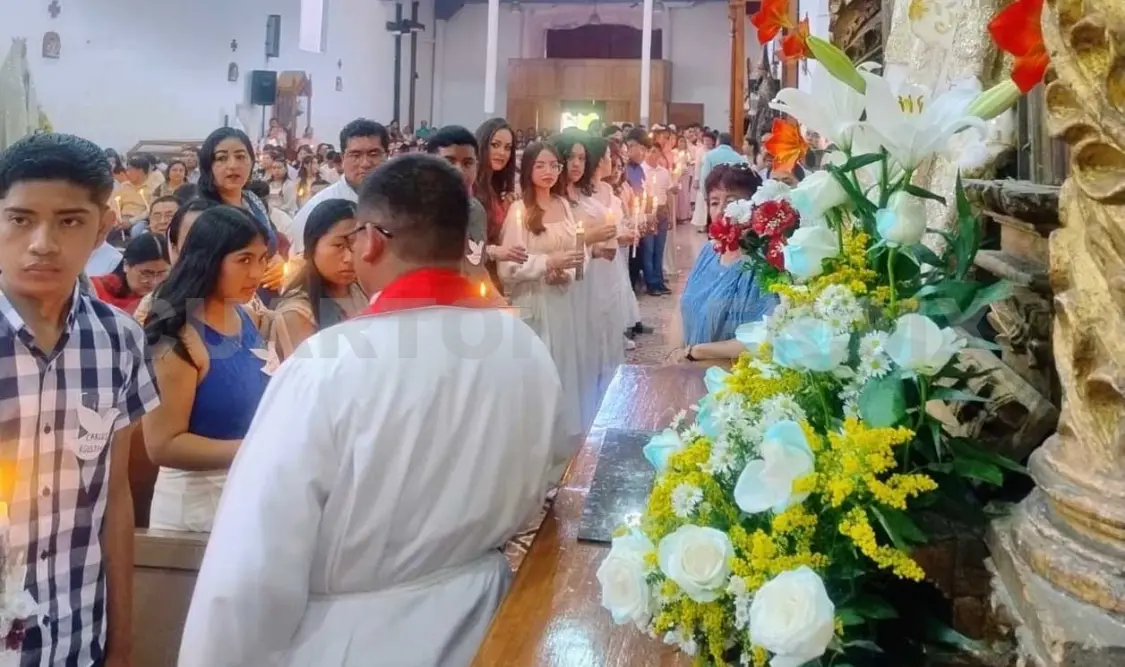 Más de 150 jóvenes, mujeres y hombres recibieron el sacramento de la confirmación en la Parroquia de San Agustín, en Teopisca.