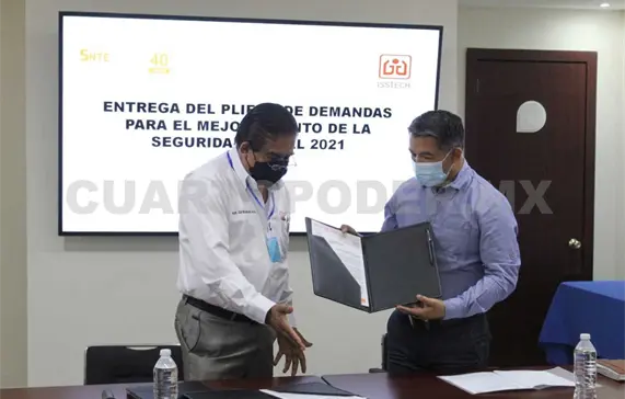 El representante del Comité Ejecutivo Nacional (CEN) del Sindicato Nacional de Trabajadores de la Educación (SNTE) en la Sección 40, Juan Emilio Hernández Molina, informó que se entregó el Pliego Nacional de Demandas (PND) 2021 para el mejoramiento de la Seguridad Social a las autoridades del Instituto de Seguridad Social de los Trabajadores del Estado de Chiapas (Isstech).