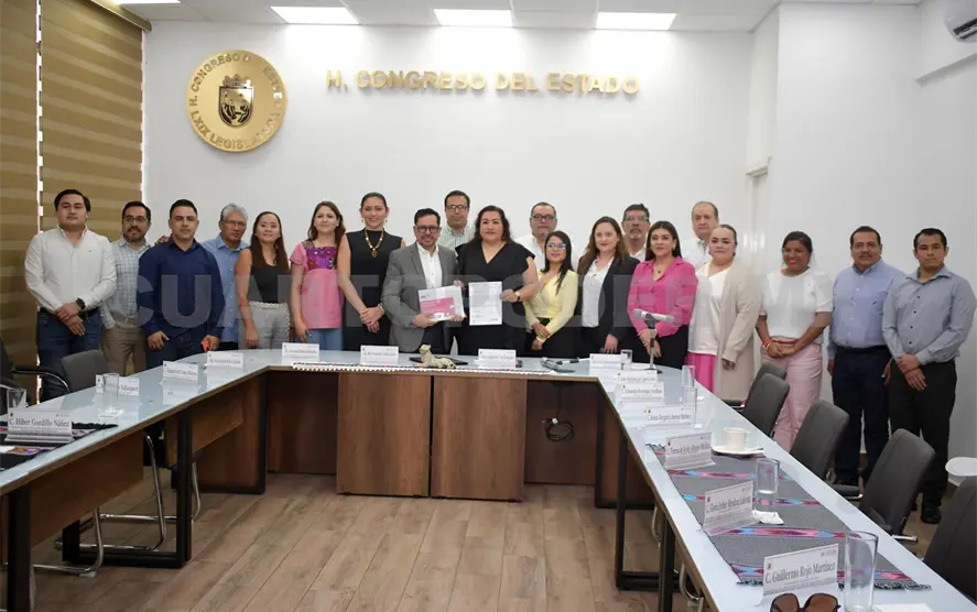 El diputado Mario Guillén Guillén, presidente de la Junta de Coordinación Política (Jucopo) en el Congreso del Estado, recibió de manos de la doctora María Magdalena Vila Domínguez, consejera presidente provisional del Instituto de Elecciones y Participación Ciudadana (IEPC), las propuestas de reformas a la Ley de Instituciones y Procedimientos Electorales.