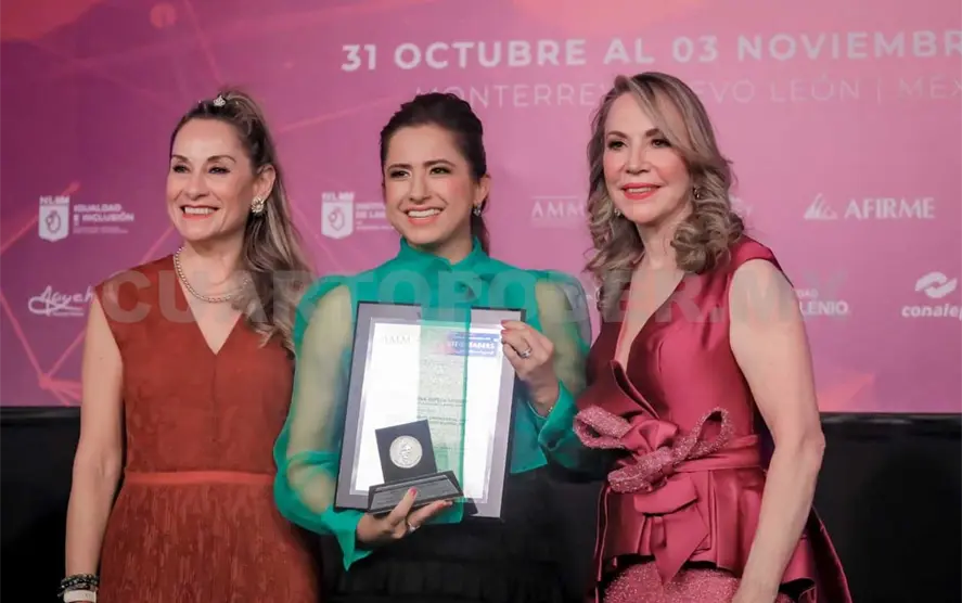 Esta mención se hizo presente, mediante la cual se reconoce la trayectoria, talento y liderazgo decidido de la socia perteneciente a la Asociación Mexicana de Mujeres Jefas de Empresas (AMMJE), cuya labor empresarial contribuye de manera significativa en el desarrollo integral de la sociedad.