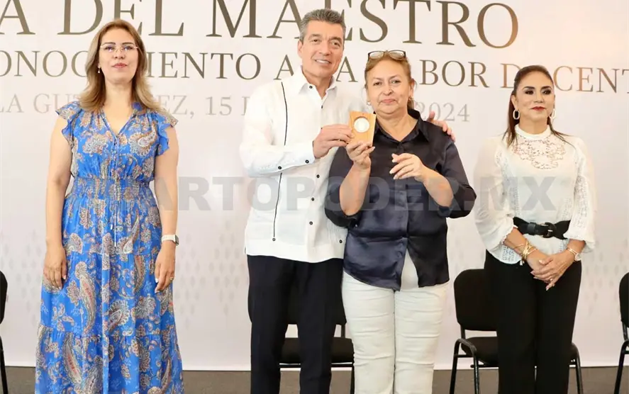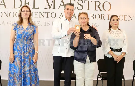“Porque al hacer de la educación un apostolado y desempeñar sus labores con pasión y amor en las aulas, se convierten en un faro que alumbra el camino de la niñez y juventud”, expresó el mandatario.
