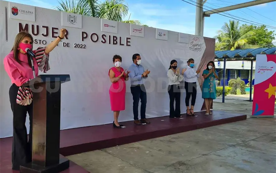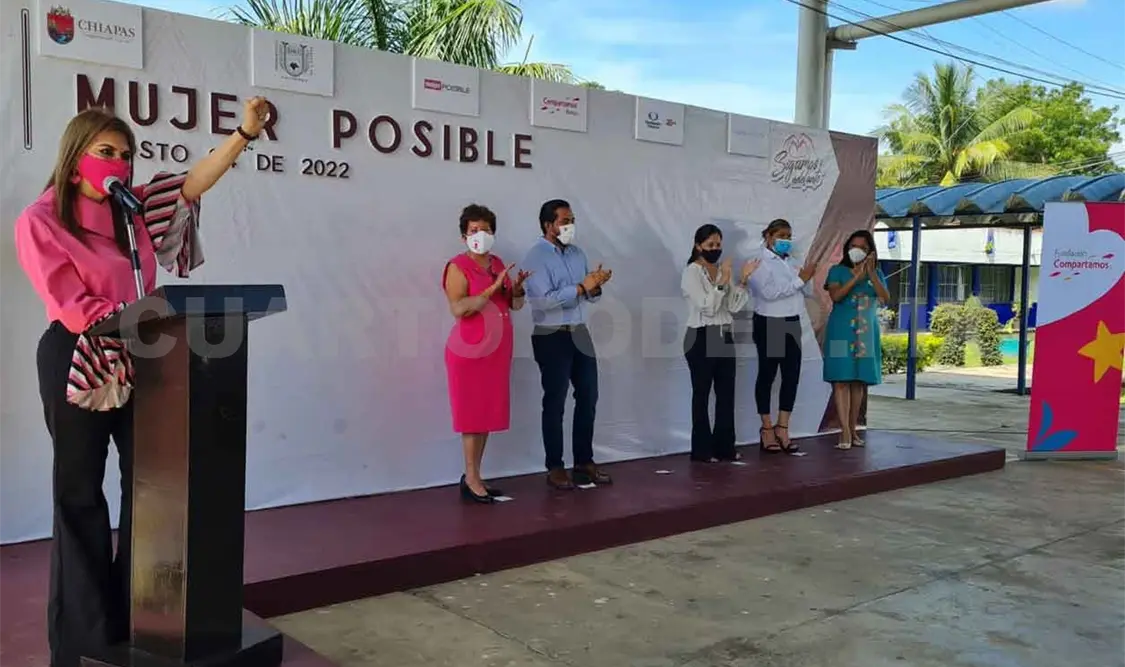 La presidenta municipal de Tapachula, Rosa Irene Urbina Castañeda, reconoció las políticas públicas en favor de la igualdad de género y empoderamiento de las mujeres emprendidas por el gobernador Rutilio Escandón Cadenas, con el programa Mujer Posible Chiapas 2022, que se inició en Tapachula.