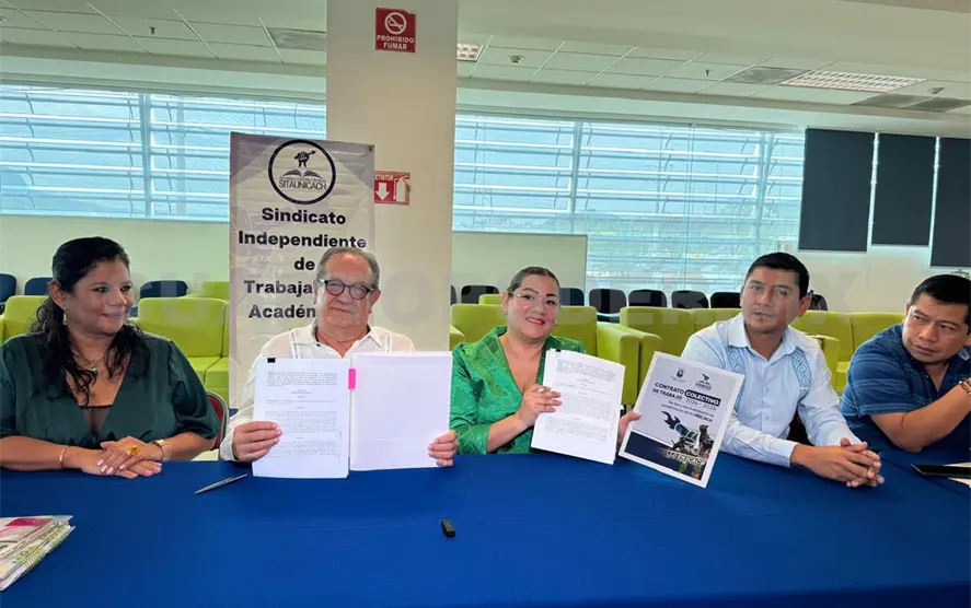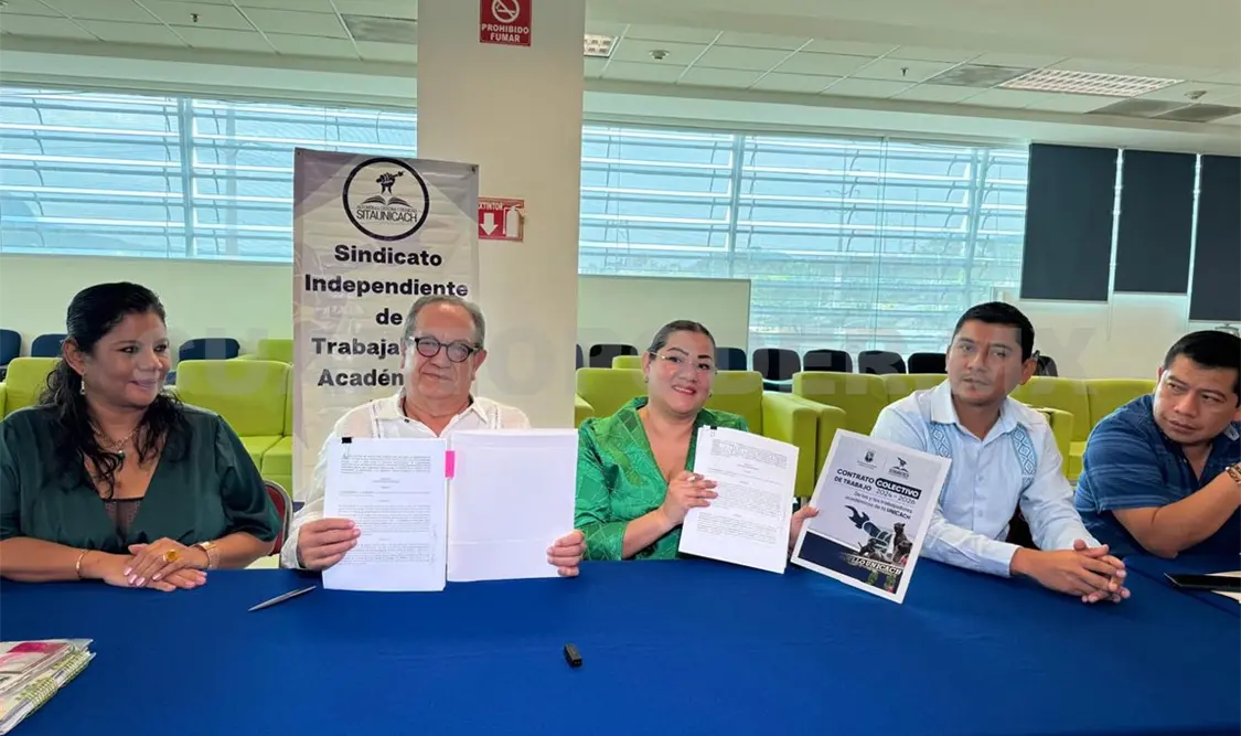 Después de seis meses de negaciones, este viernes se consolidó la firma del Contrato Colectivo entre Rectoría y el Sindicato Independiente de Trabajadores Académicos de la Universidad de Ciencias y Artes de Chiapas (Sitaunicach), con beneficios que están relacionados con el aumento salarial, prestaciones de ley y vales de despensa.