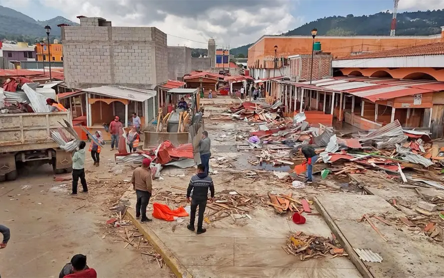 Con maquinaria pesada autoridades recuperaron la madrugada de este martes los espacios invadidos y abandonados en el Mercado del Norte (Merponorte) en San Cristóbal de Las Casas.