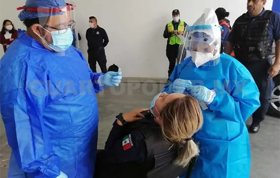 Personal médico del Distrito de Salud II en la región Altos, expresó su reconocimiento a la Dirección de Policía Municipal ya que al concluir la aplicación de pruebas rápidas de antígeno se constató que el cien por ciento de los elementos tuvieron un resultado negativo al covid-19.