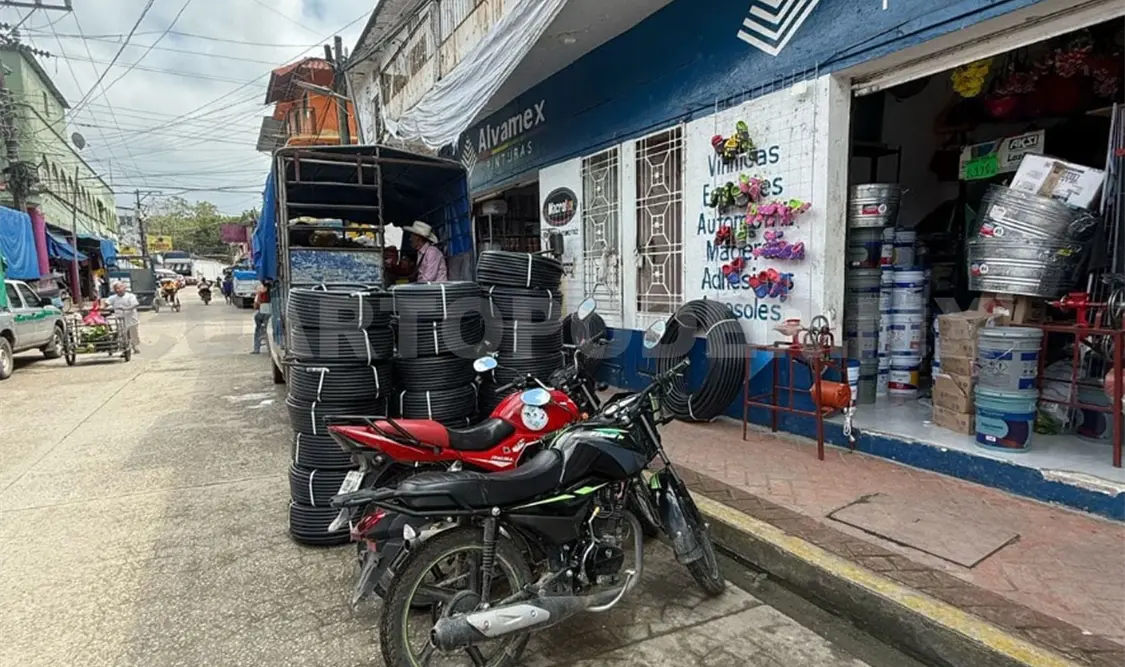 Prueba de ello es lo que hace con la vía pública, donde ordenó a sus empleados sacar sus productos a la vialidad, sin importar que en la cabecera municipal de Salto de Agua las calles son muy reducidas, sobre todo en la zona centro.