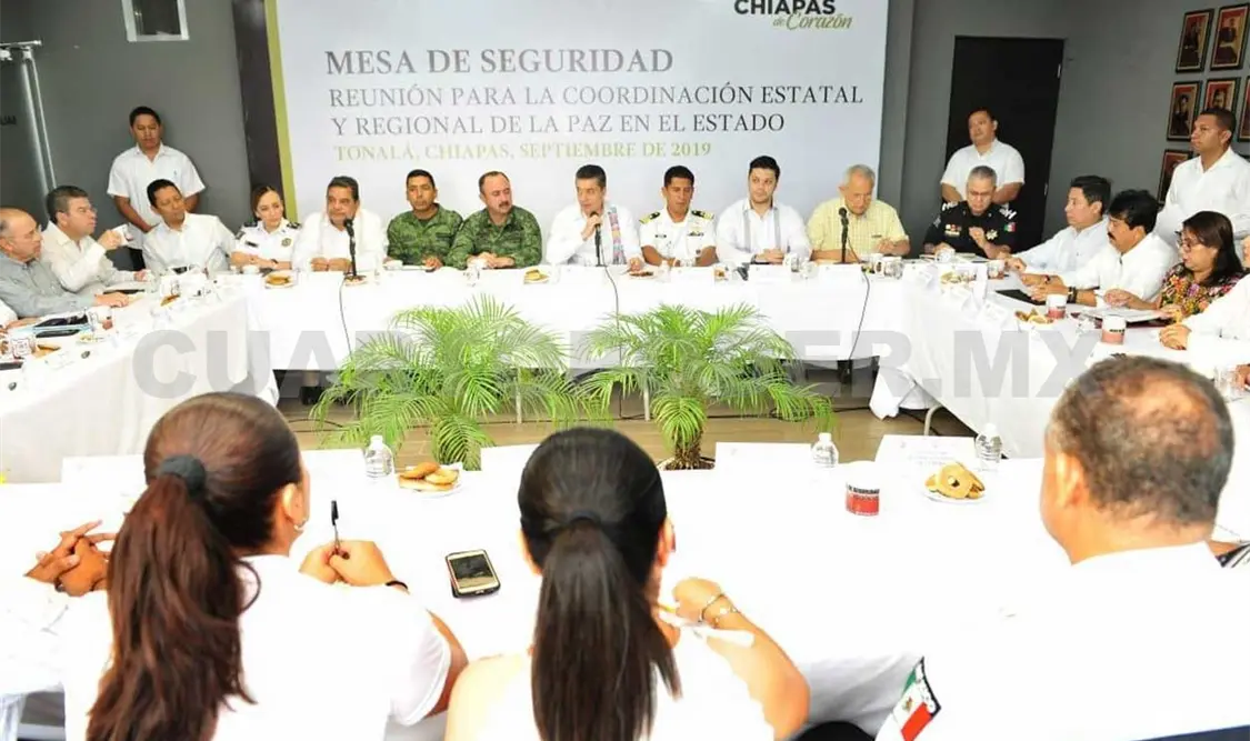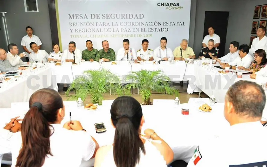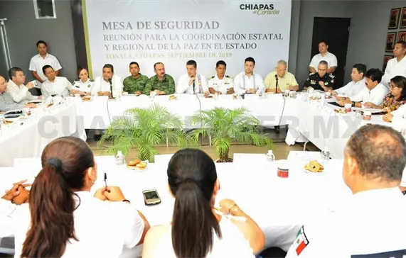 El fiscal general Jorge Luis Llaven Abarca acompañó al gobernador Rutilio Escandón Cadenas a la Mesa de Seguridad Estatal y Regional que se desarrolló en la cabecera municipal de Tonalá, donde destacó los resultados de los operativos de restitución de tierras invadidas en Chiapas y exhortó a fortalecer las medidas preventivas para erradicar la violencia familiar en los municipios de esta región, ya que esta conducta ilícita es la que más se comete en la entidad.