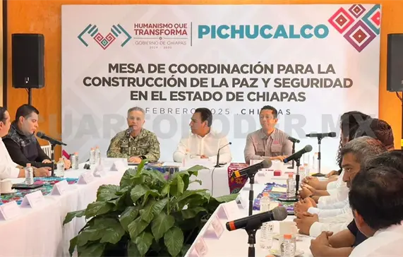 El secretario de Seguridad del Pueblo (SSP), el doctor y piloto aviador, Óscar Alberto Aparicio Avendaño, asistió a la Mesa de Seguridad de Coordinación de Paz y Seguridad en el Estado, que encabezó el gobernador Eduardo Ramírez Aguilar en el municipio de Pichucalco.