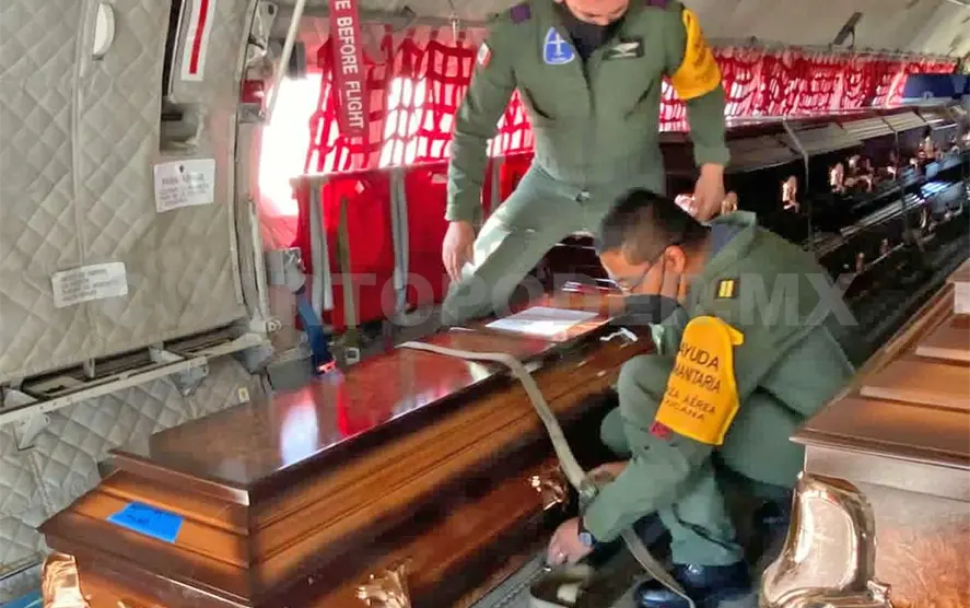 Marcela Díaz Carachure, delegada en Chiapas de la Asociación Nacional de Directores de Funerarias, explicó que 18 cadáveres fueron llevados al aeropuerto Ángel Albino Corzo, de donde un avión de la Fuerza Aérea Mexicana los transportó a la capital guatemalteca.