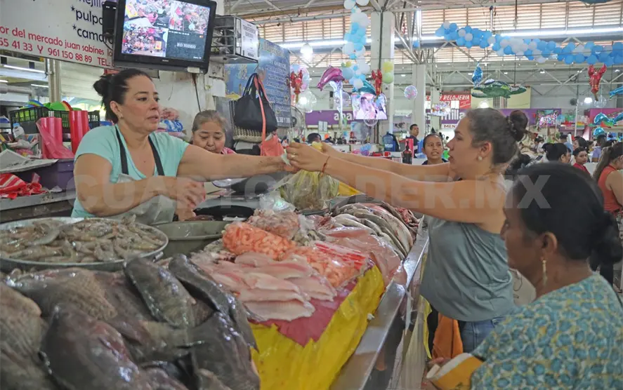En el caso del mercado Juan Sabines, se ha notado desde el lunes 14 de abril una mayor afluencia de compradores de camarón y mojarra, principalmente.