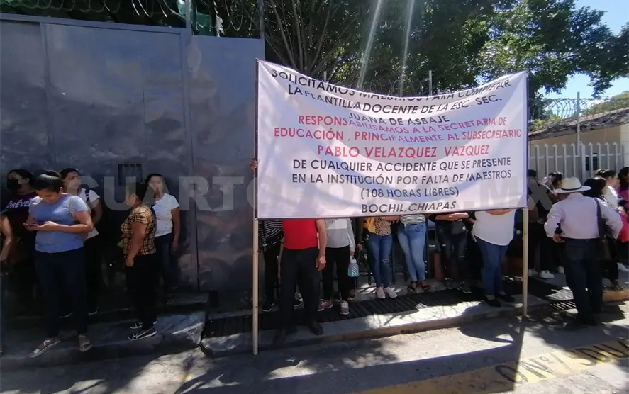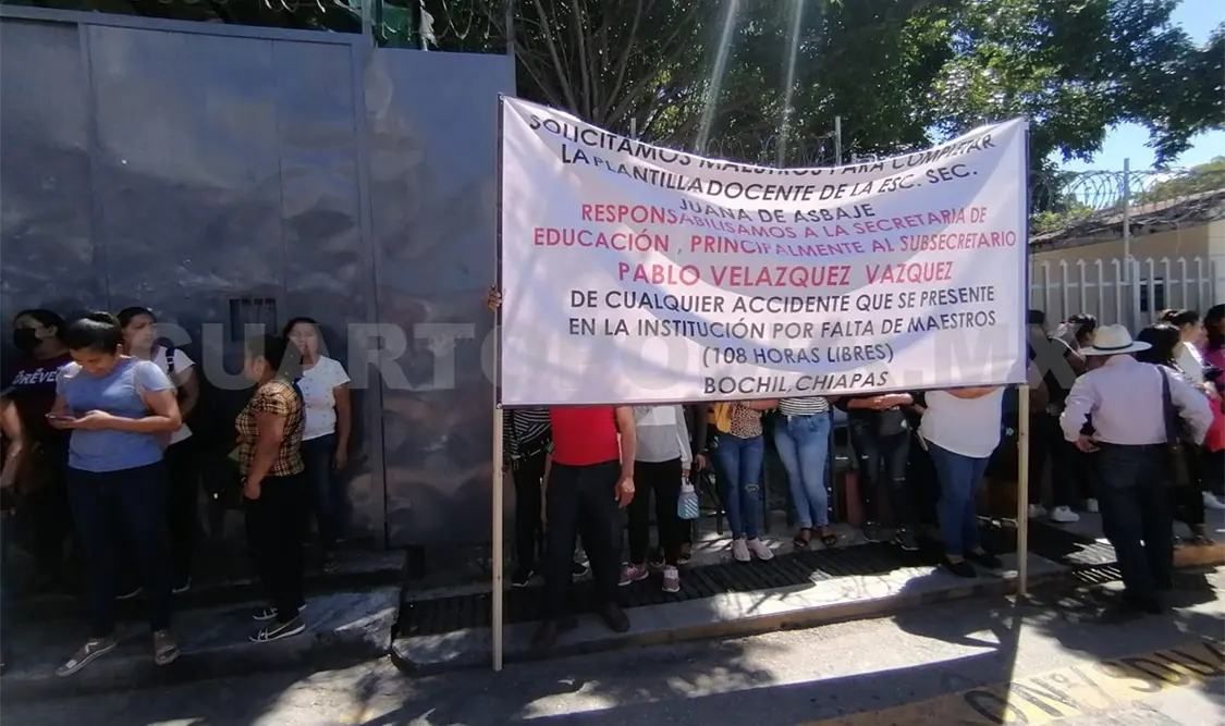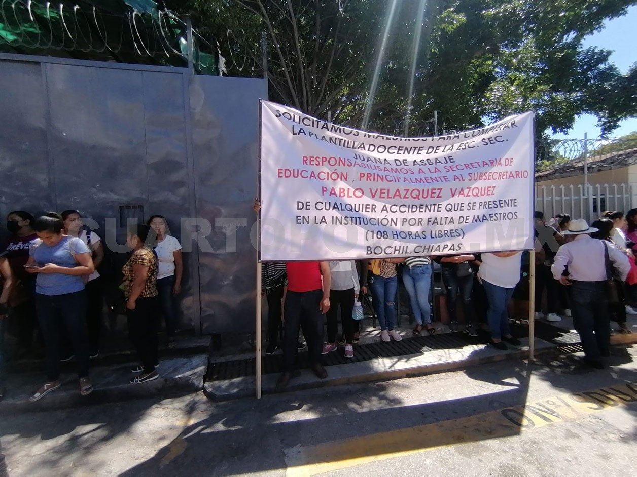 Toda la comunidad escolar de la Escuela Secundaria “Juan de Asbaje” en Bochil se encuentra afectada por la falta de maestros, motivo por el cual padres de familia tomaron las oficinas centrales de la Secretaría de Educación en Chiapas (SE), solicitando completar la plantilla de personal docente que tiene sin clases a más de 400 alumnos.