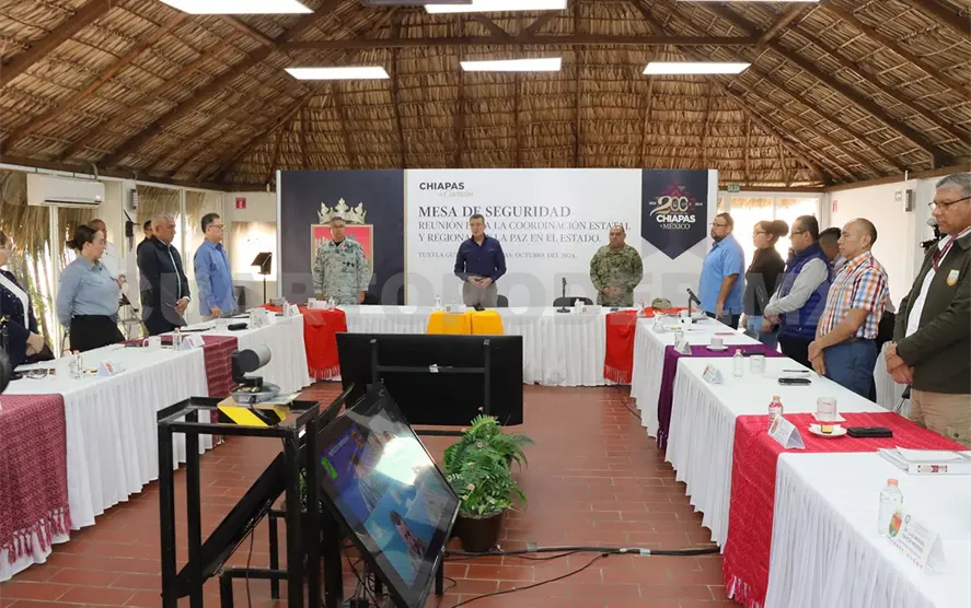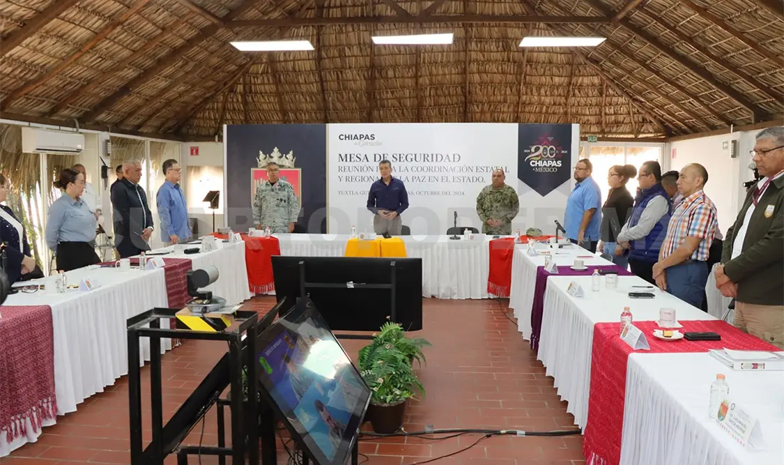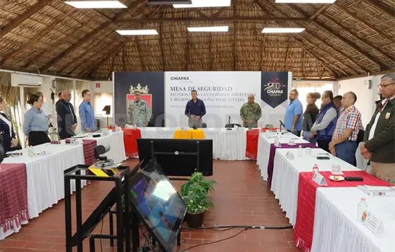 El gobernador Rutilio Escandón Cadenas destacó que la Mesa de Coordinación Estatal para la Construcción de la Paz y la Seguridad se ha convertido en un espacio en el que las autoridades de los tres niveles de gobierno y otras instituciones participan en el análisis y diseño de las acciones y estrategias que atienden la seguridad y los asuntos más importantes y sensibles de Chiapas, al tiempo que agradeció el hacer causa común a favor del bienestar y la atención de las necesidades del pueblo.