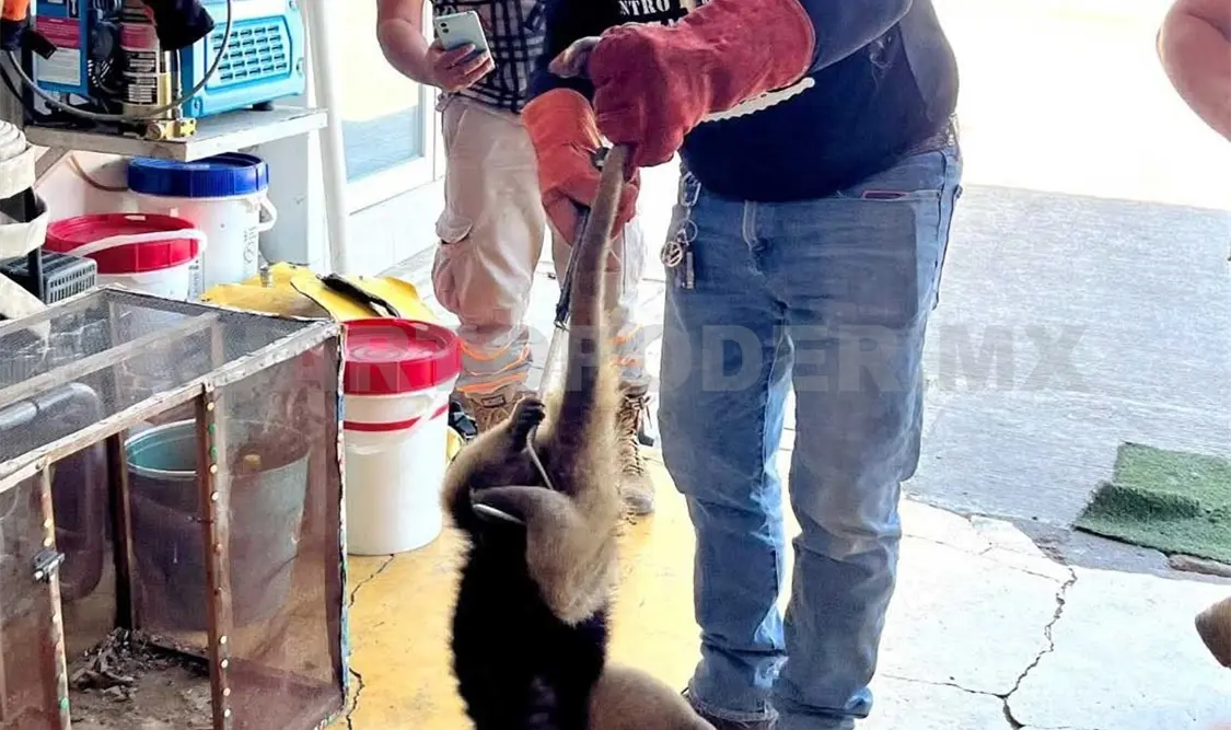 El personal de Protección Civil logró capturar al oso hormiguero, denominado “Madero”, en un operativo coordinado con la Procuraduría Federal de Protección al Ambiente (Profepa). Tras una revisión general, se detectó que presentaba heridas recién cicatrizadas, así como infestación de garrapatas y pulgas.