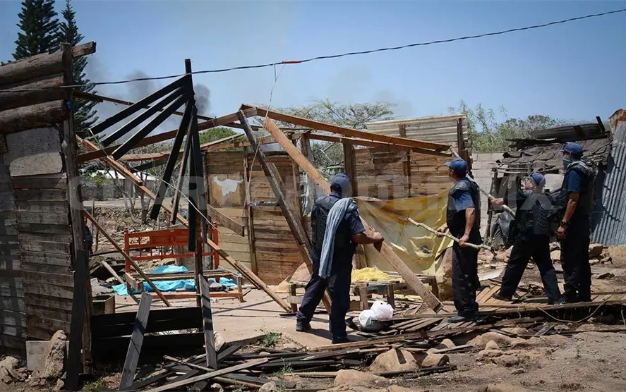 Una vez lograda la recuperación de los citados predios, la autoridad ministerial instruyó la demolición de las casas construidas por los invasores, con el fin de realizar la restitución integral a sus legítimos propietarios.