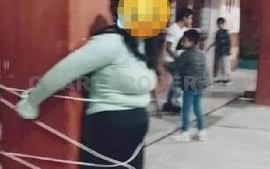 Ana María “N”, tesorera de la escuela Sor Juana Inés de la Cruz, fue detenida y amarrada, al igual que su esposo, ya que son acusados presuntamente de robar 90 mil pesos, producto de las cooperaciones de los padres de familia.