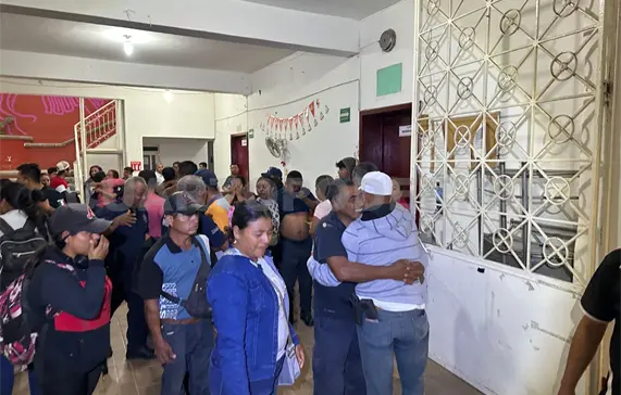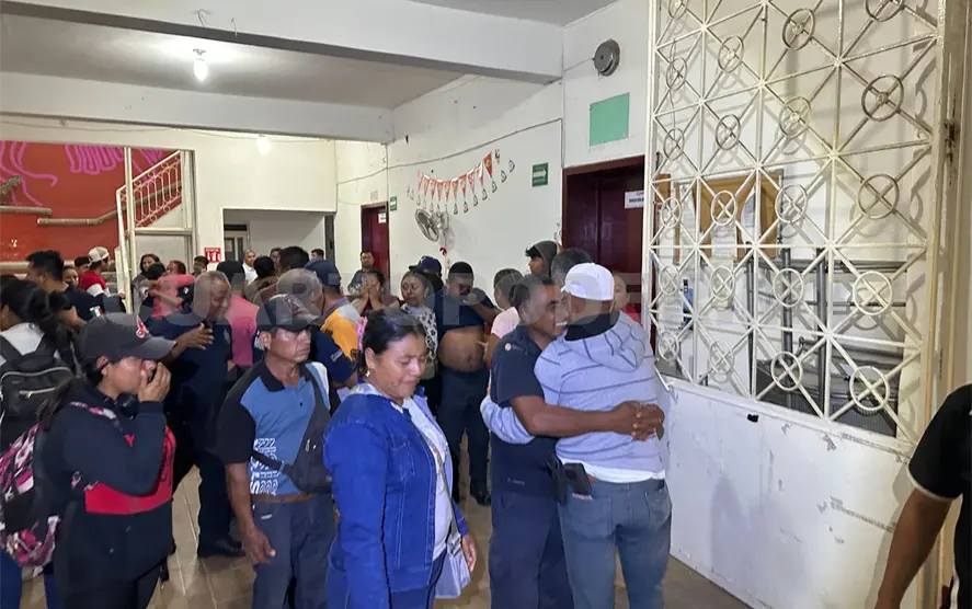 Minutos después de las 18:00 horas arribaron dos vehículos de transporte de personal al municipio de Cintalapa, con un resguardo por parte del personal de la Guarda Nacional, Sedena y Fuerza de Reacción Inmediata Pakal (FRIP) con dirección al parque central.