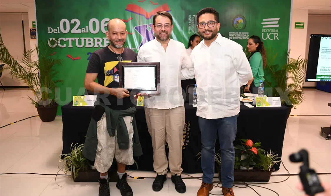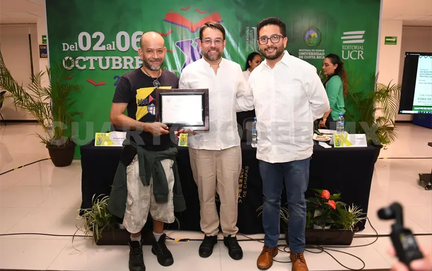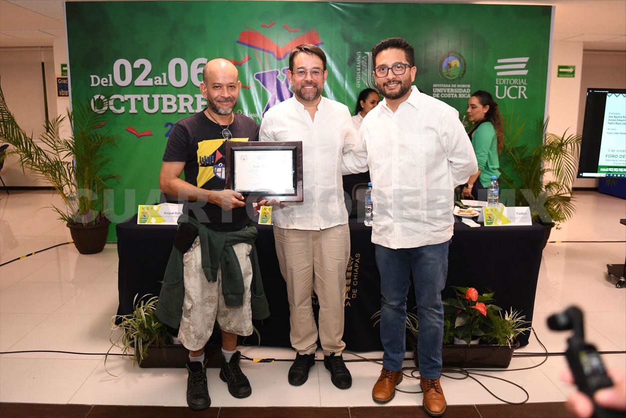 Esta agradable velada concluyó con el reconocimiento al escritor jalisciense, mismo que en representación del rector Carlos Faustino Natarén Nandayapa, fue entregado a sus hijos por el secretario para la Inclusión Social y la Diversidad Cultural de la Unach, Enrique Antonio Paniagua.