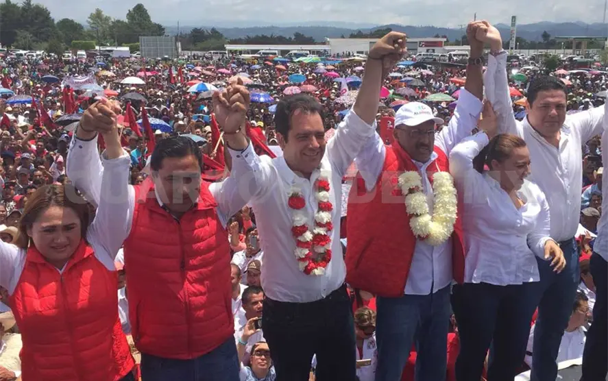 “A nosotros nos gusta comprometernos, lo haremos hasta degastar el caite y sudar la camiseta, que les quede muy claro; vamos a ganar el 1 de julio porque su amigo Roberto Albores, ni se asusta ni se raja”, dijo.