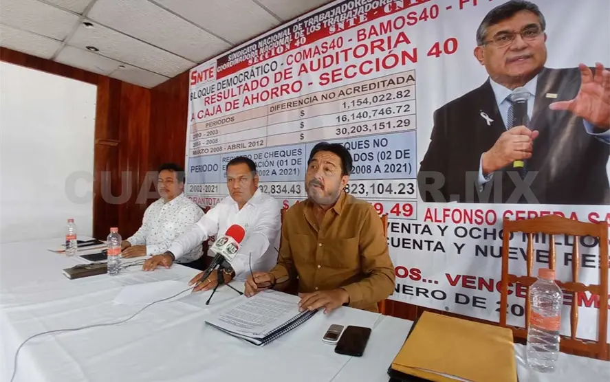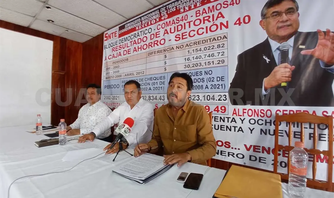 Este martes, acompañado de docentes de diferentes regiones del estado, Roger Palacios Figueroa, representante del Frente Progresista Magisterial, señaló que tras una auditoría a la caja de ahorro de la Sección 40 se ha notado un faltante millonario.