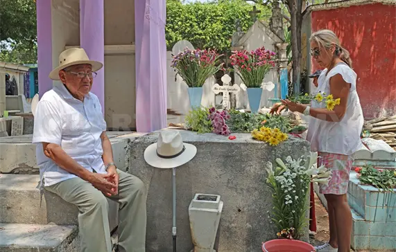 Doña Guadalupe Gutiérrez Vázquez acudió al Panteón Viejo para llevar una ofrenda a su suegra, quien perdió la vida hace tres años.
