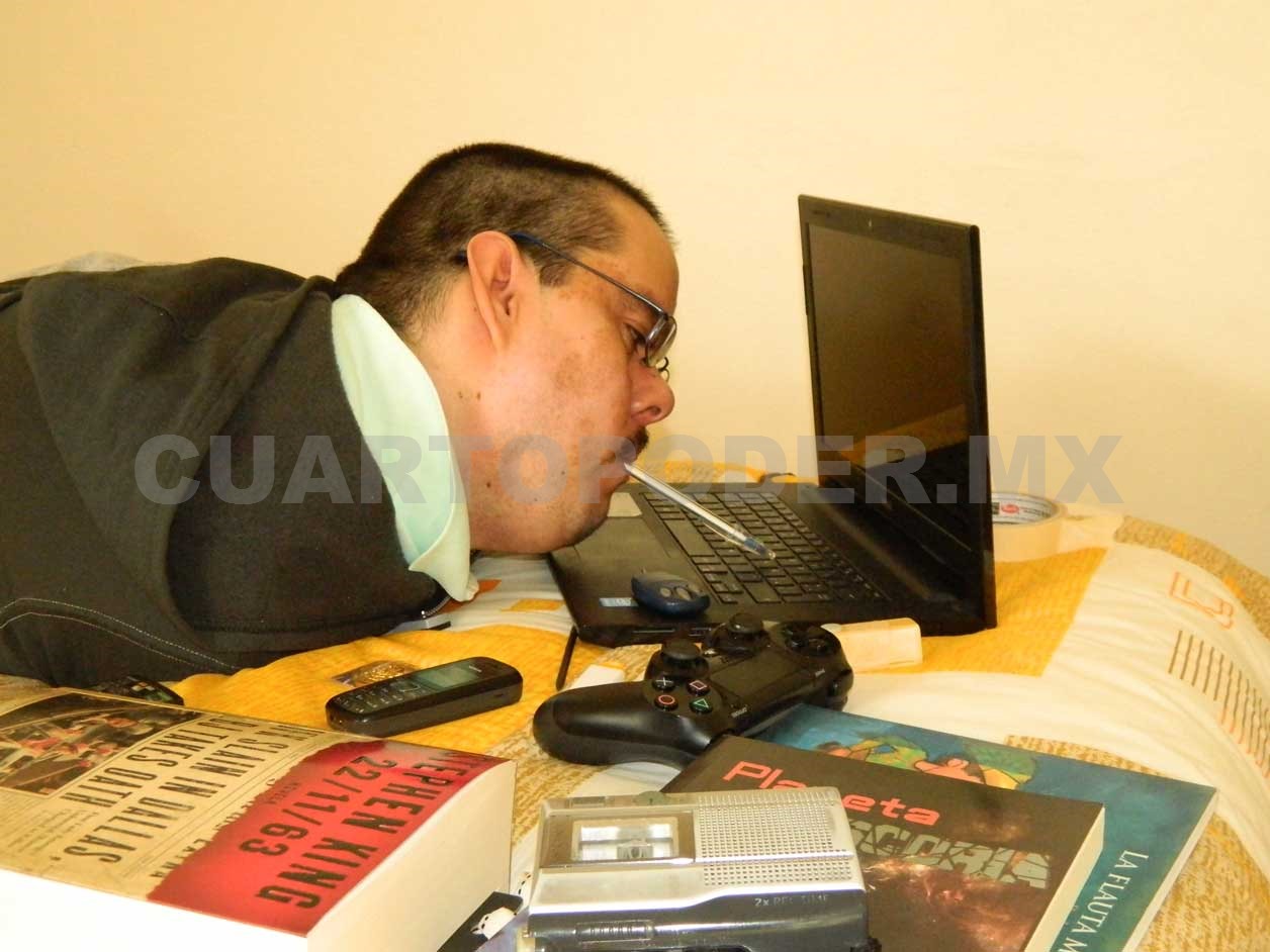 “Con la boca tomo el lápiz para presionar las teclas de la computadora, para escribir en un cuaderno y para ponerme los lentes; mis manos son parte de mi boca, de mis dientes y del mentón”, agrega.