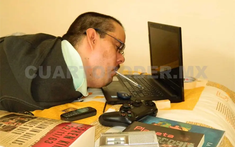 Acostado en su cama, como se la ha pasado casi desde que vino al mundo, afirma que nació con una enfermedad congénita llamada artrogriposis, caracterizada por la existencia de contracturas que afectan diversas articulaciones del cuerpo, principalmente las extremidades. La padece uno de cada tres mil habitantes.