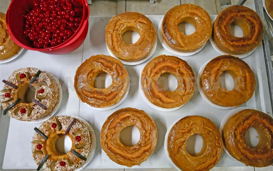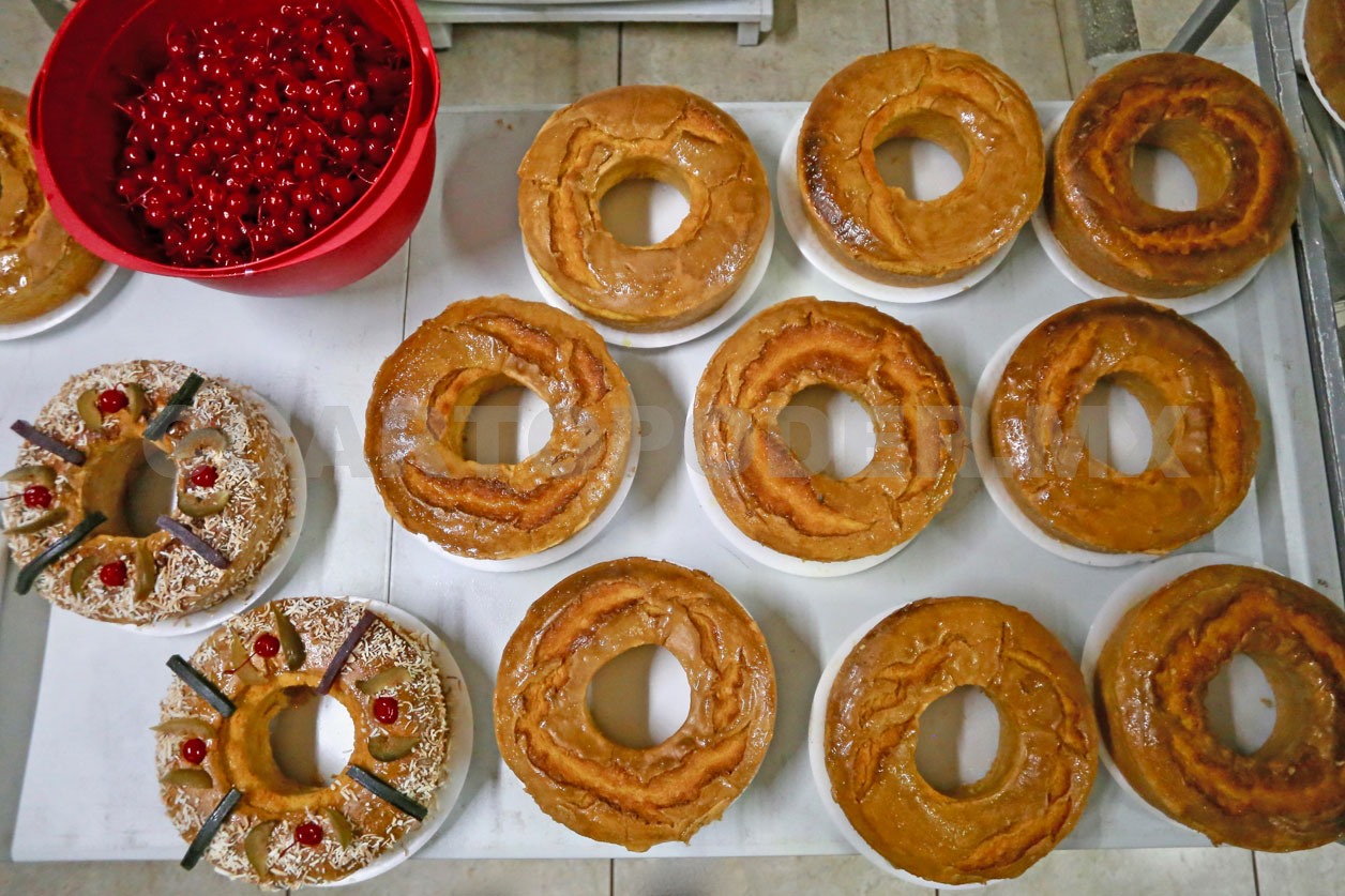 El amasado de los materiales (que lleva unas dos horas y media) es importante, después de eso los ingredientes son llevados a los moldes. El horno hace el trabajo de cocción. El siguiente paso es esperar a que el producto se enfríe para pasar a la decoración.