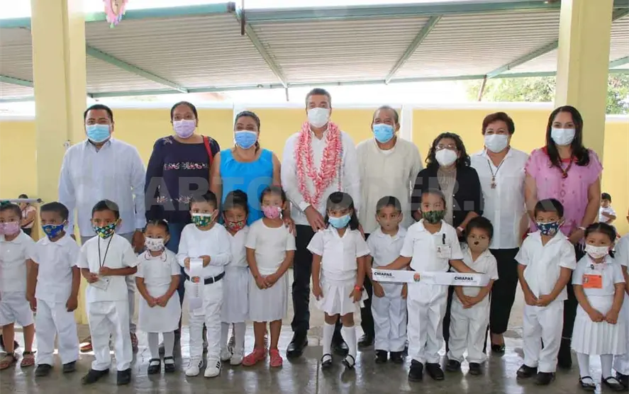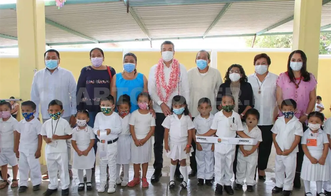 El mandatario reconoció a las y los maestros porque, pese a las dificultades que ha representado la pandemia de covid-19, siguen trabajando para sacar adelante la educación de Chiapas, al tiempo de reiterar el llamado al personal docente y directivo, estudiantes, madres y padres de familia a no bajar la guardia y mantener las recomendaciones preventivas de sana distancia, autocuidado e higiene, a fin de garantizar una convivencia escolar segura.