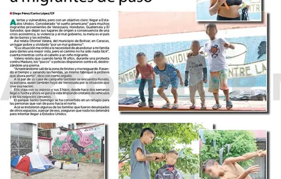 El parque Santo Domingo se ha convertido en un refugio para las personas que van de paso hacia el norte.