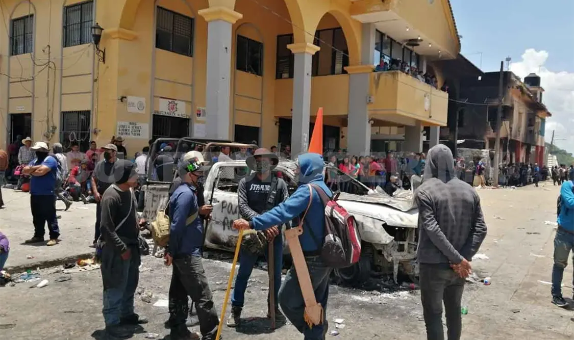 Los destrozos sucedieron la tarde del lunes cuando los aproximadamente tres mil pobladores exigían a la Fiscalía General del Estado que cateara las viviendas que según ellos, son propiedad de los “sicarios”, pero la dependencia se negó con el argumento de que necesita una orden del juez.